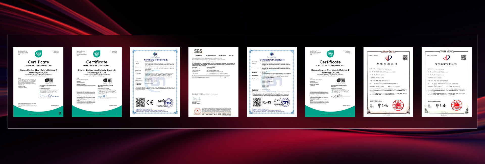Depuis sa création, notre entreprise a toujours placé les intérêts de ses partenaires au premier plan. Afin de garantir la sécurité de leurs investissements et de les aider à renforcer leur réputation sur le marché, nous avons investi massivement dans la recherche et le développement et obtenu de nombreuses certifications reconnues. Celles-ci comprennent des brevets, des certifications de qualité sectorielles et des certifications environnementales, telles que SGS、RSL、MSDS、OEKO-TEX、Reach、SMETA.